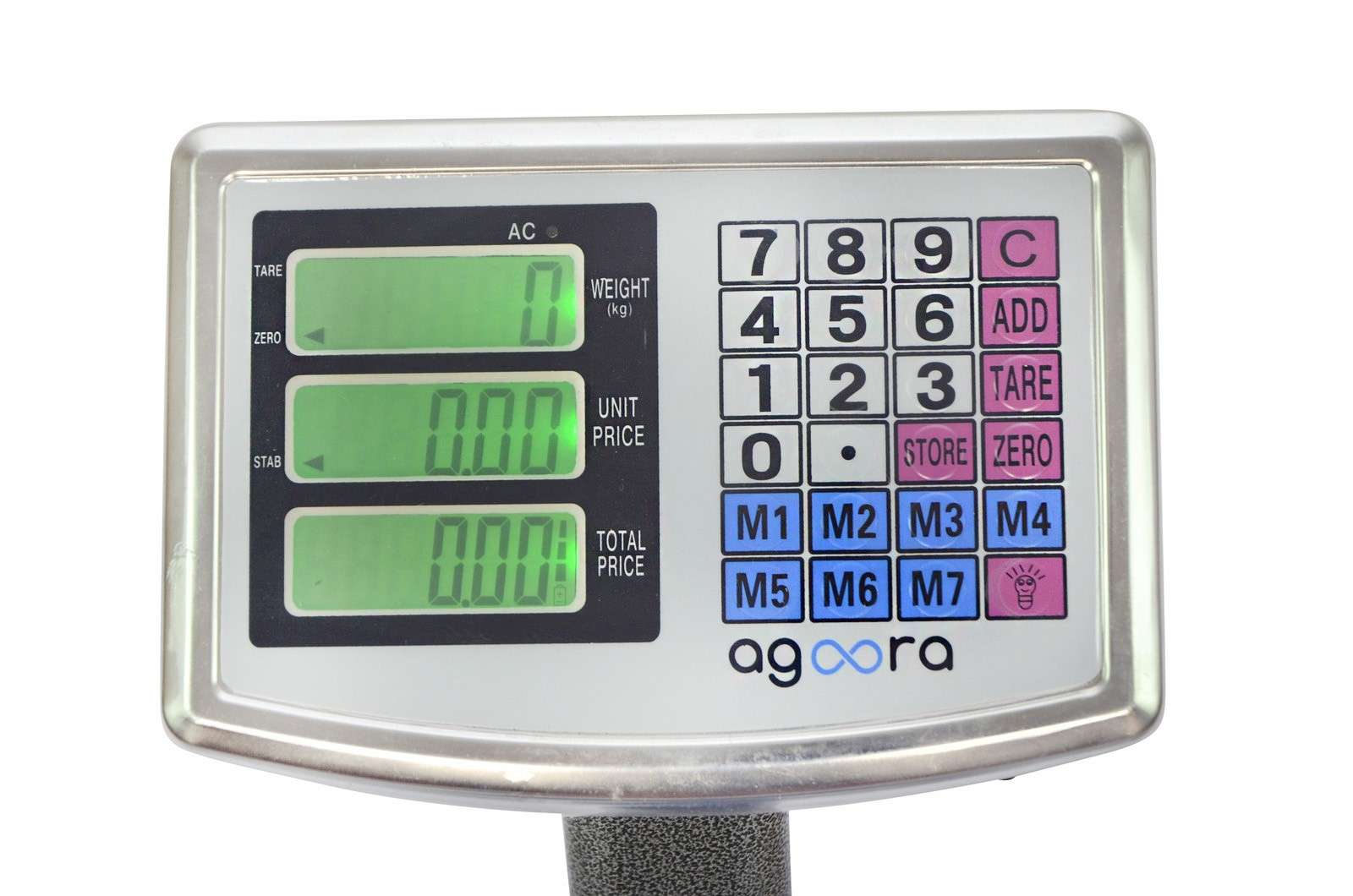 - Pantalla LCD, muestra peso, precio e importe