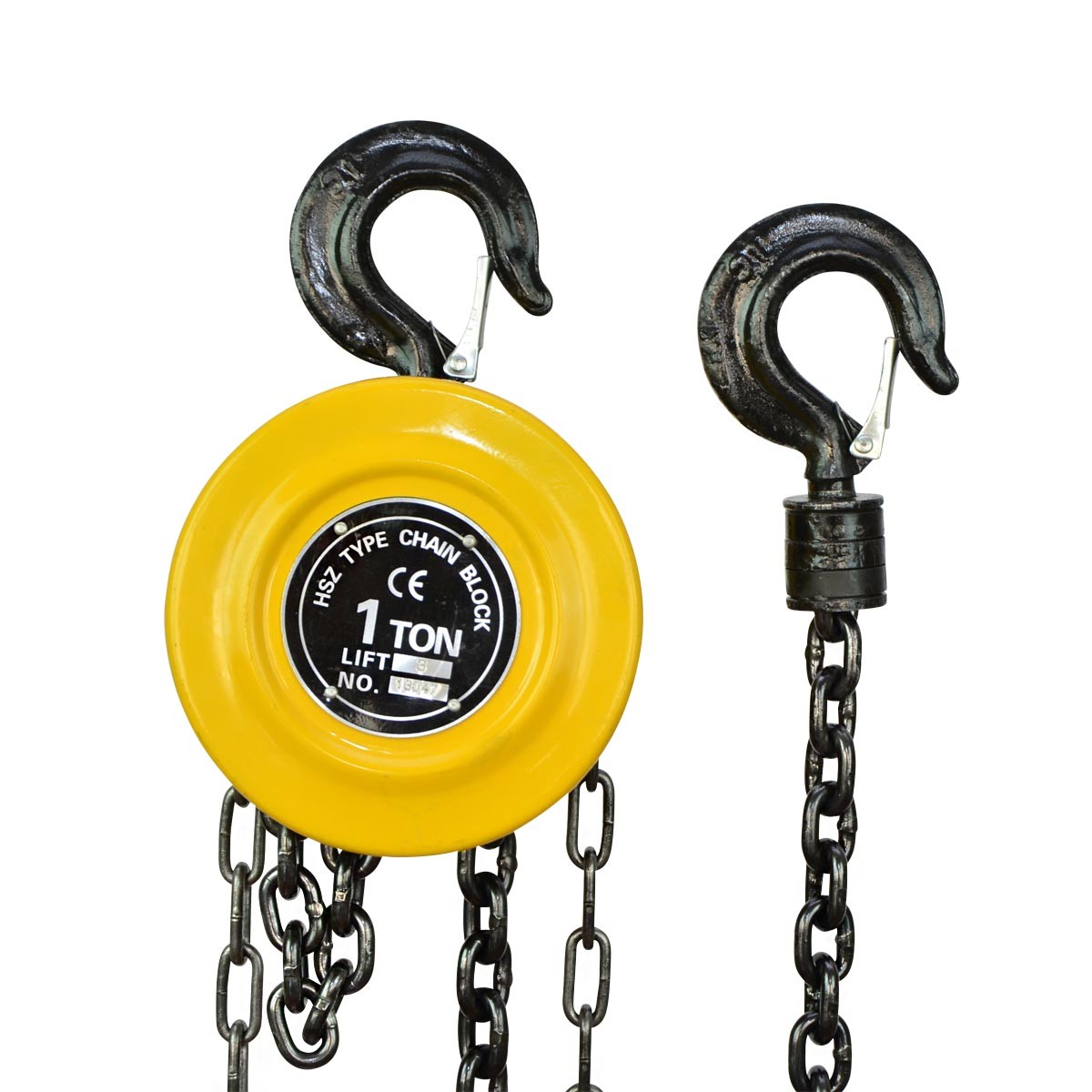 FÁCIL MANIOBRABILIDAD: los ganchos giratorios de acero forjado completamente forjados con pestillo de seguridad permiten que el polipasto de cadena se una a un trole como un bloque de cadena móvil para un levantamiento seguro